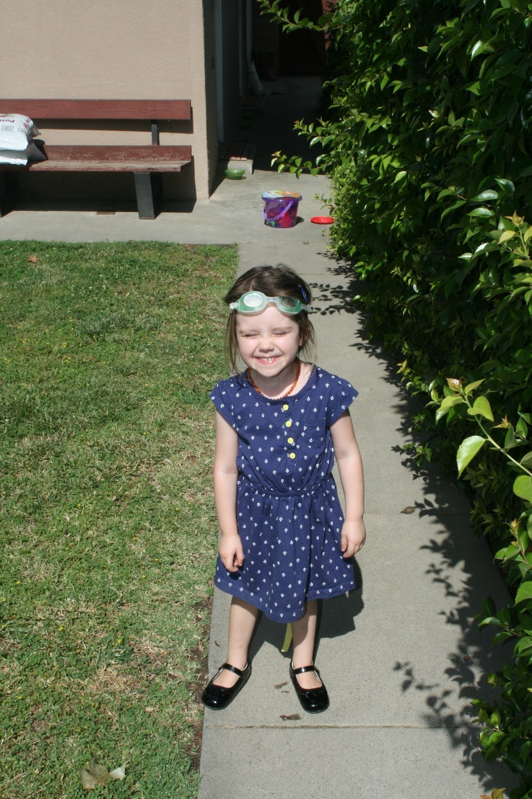 10:41: I finally convince her to get out of the pool and we go inside for a snack of graham crackers, milk, peaches, and goldfish.
