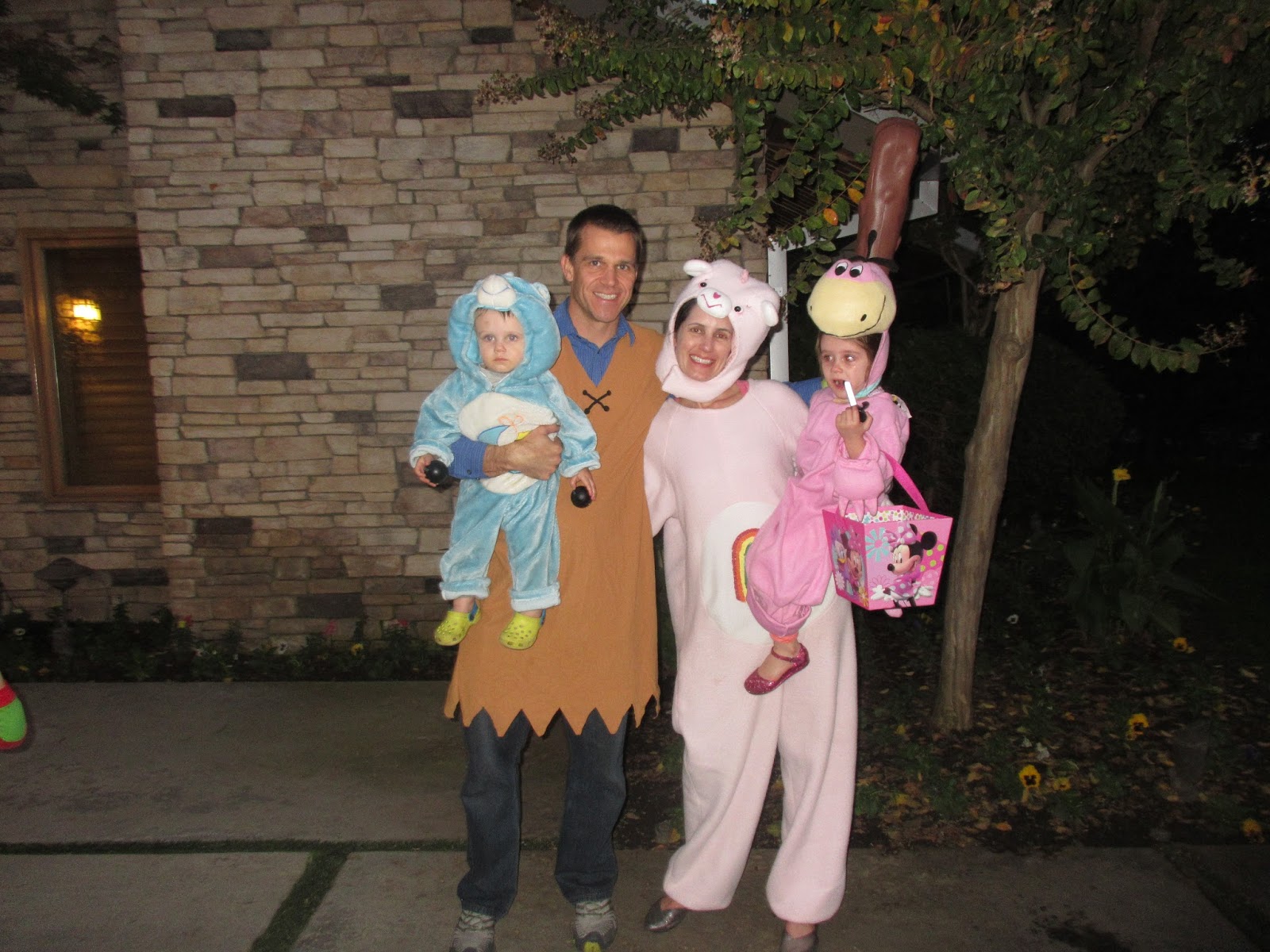 We headed home for a short rest and costume change before heading over to Charlyse and Scott's for some food and trick or treating. We scrounged around and found some old costumes that we reused. The big kids had a great time trick or treating and Emmett was content to be carried and then run around playing. We went to the perfect amount of houses and Clara even got a few lollipops! The kids had fun playing together and even got some snuggles from Peppa Pig who made her yearly appearance. Clara has never watched the show, but has still been enthralled with her the last two years. This year she said, "I think Peppa Pig is a real sweet pig." We had a ton of fun, but I think we are Halloweened out!