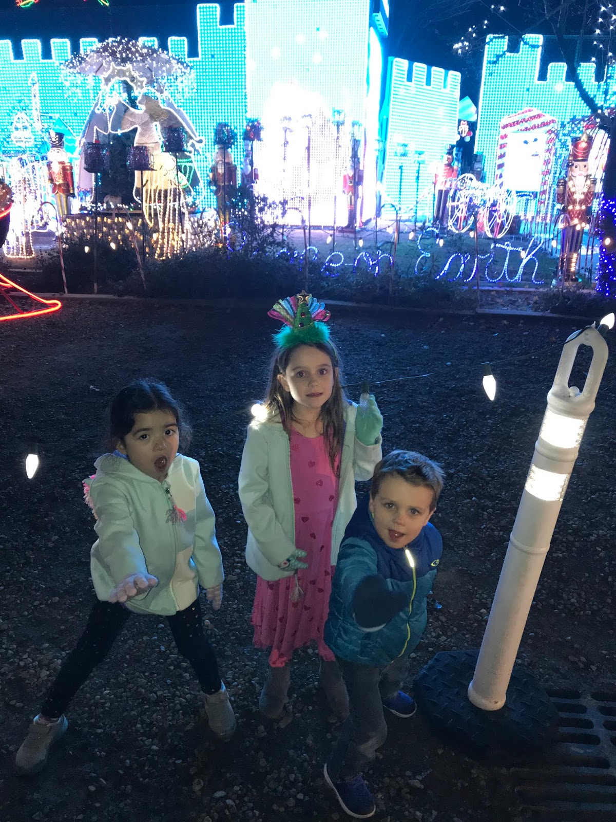 A couple of nights we walked around our neighborhood to see the decorations. This was the kids' favorite.